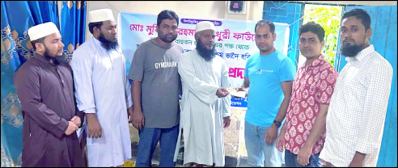 প্রেস বিজ্ঞপ্তি \ বাহুবল উপজেলার খাগাউড়া মোঃ মুজিবুর রহমান ফাউন্ডেশন পর পক্ষ থেকে শহরতলীর পশ্চিম ভাদৈ জামিয়া মাআরিকুল কোরআন মাদ্রাসায় ১ লাখ ১০ হাজার টাকা আর্থিক সহযোগিতা করা হয়েছে। গত বৃহস্পতিবার (২২ আগষ্ট) দুপুর ১২ টায় সাবেক চেয়ারম্যান মরহুম মুজিবুর রহমান চৌধুরীর ৪র্থ ছেলে উক্ত ফাউন্ডেশনের প্রতিষ্ঠাতা সভাপতি মনিরুল আলম চৌধুরী’র মাধ্যমে মাদ্রাসার কর্তৃপক্ষের হাতে ১ লাখ ১০ হাজার টাকার চেক তুলে দেয়া হয়। এ সময় উপস্থিত ছিলেন, এডভোকেট শাহ আঙ্গুর আলী, মোঃ আরিফে রব্বানী টিটু ও মোঃ আল আমিন। উল্লেখ্য, মনিরুল আলম চৌধুরী এই ফাউন্ডেশনের মাধ্যমে তার এলাকাসহ জেলার বিভিন্ন জায়গায় হতদরিদ্র, বিদ্যালয়, মাদ্রাসা, অসহায় ছাত্র-ছাত্রীদের পড়ালেখার উপকরণসহ আর্থিকভাবে সহযোগীতা করে আসছেন। ইতিমধ্যে এই ফাউন্ডেশনের কার্যক্রম এলাকায় সমদ্রিত হচ্ছে।